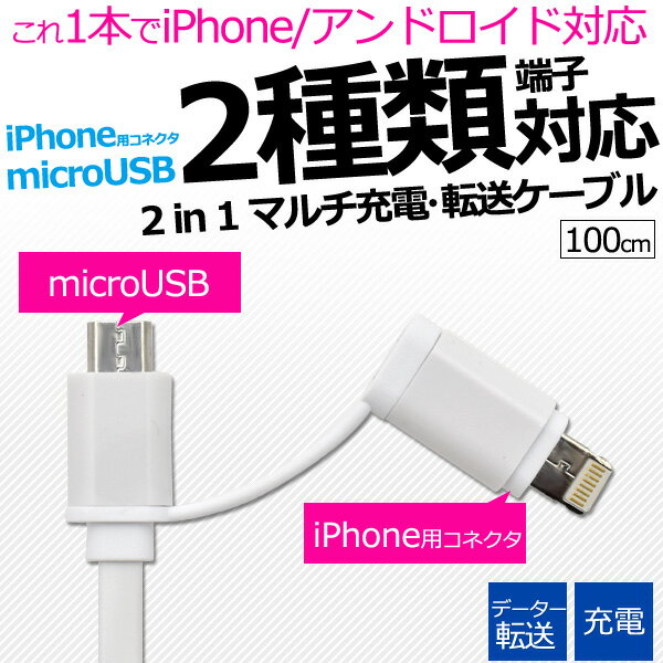 ◎ネコポス便送料無料◎2in1マルチ充電・転送USBケーブル(充電 データ 転送 スマホ ゲーム)[M便 1/10]