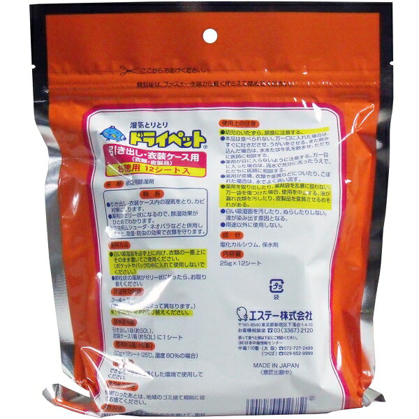 エステー ドライペット 引き出し・衣装ケース用(衣類皮製品) お徳用 12シート入 [キャンセル・変更・返品不可]