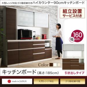 送料無料 幅160 高さ185 OLEGANO 組立設置 オレガノ 開梱設置付 新生活応援 引き出しタイプ キッチンボード 大型レンジ対応 ゴミ箱収納付き ハイカウンター90cmキッチンボード 500028428